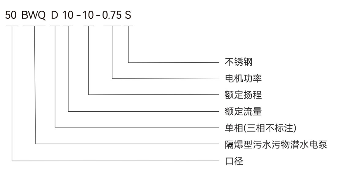 BWQ系列隔爆型污水污物潜水电泵为我公司最新一代防爆水泵产品;该系列产品按照GB3836.1-2010《爆炸性环境 第1部分:设备 通用要求》和GB3836.2-2010《爆炸性环境 第2部分:由隔爆外壳“D”保护的设备》的要求,制成隔爆型,并参照Q/SR 01-2021《隔爆型污水污物潜水电泵》标准制造。